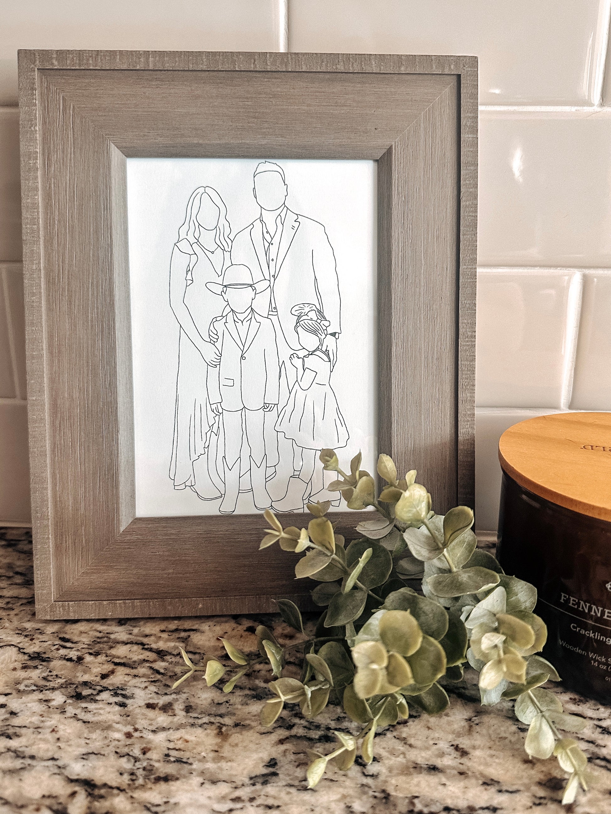 The frame in the product photo is a 5x7, image printed on white card stock at home with a standard HP printer.